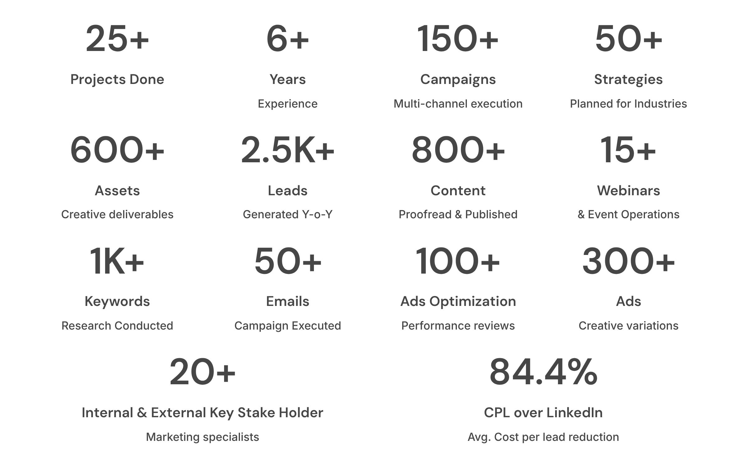 Proven outcomes across digital campaigns and performance-driven marketing strategies, enabling measurable business growth. Successfully delivered consistent Y-o-Y improvements in lead generation and engagement, with performance peaks achieved when all operations and campaigns were aligned as per monthly plan.